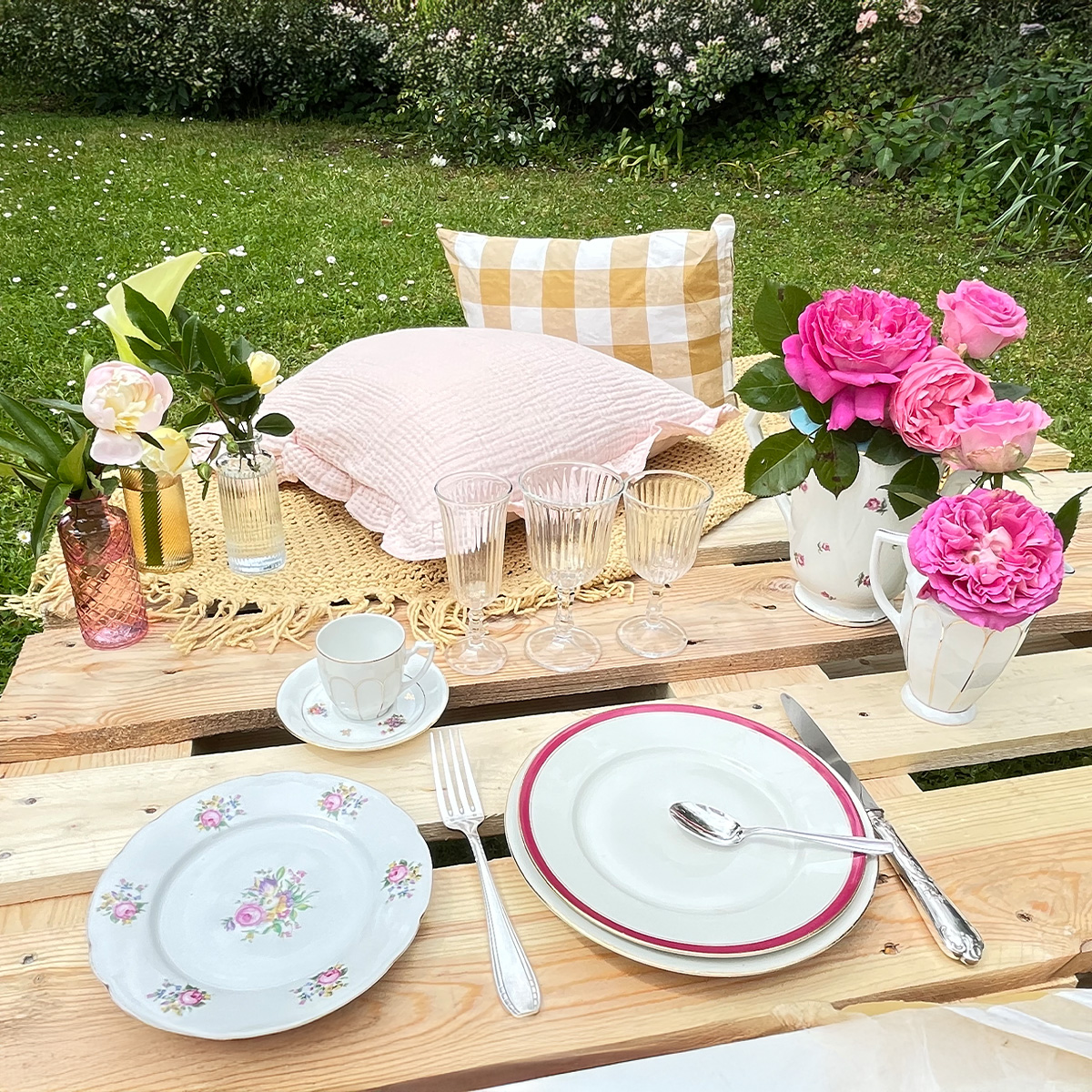 Le pack facile* + la décoration de la table comprenant 3 petits vases colorés transparents et 2 contenants moyen et grand modèle porcelaine ancienne (par tablé de 2 à 8 personnes)